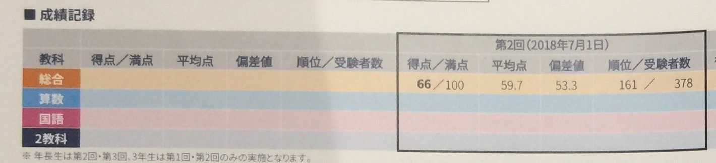 2018年7月 四谷大塚 リトルオープンスクールテスト 年長の結果
