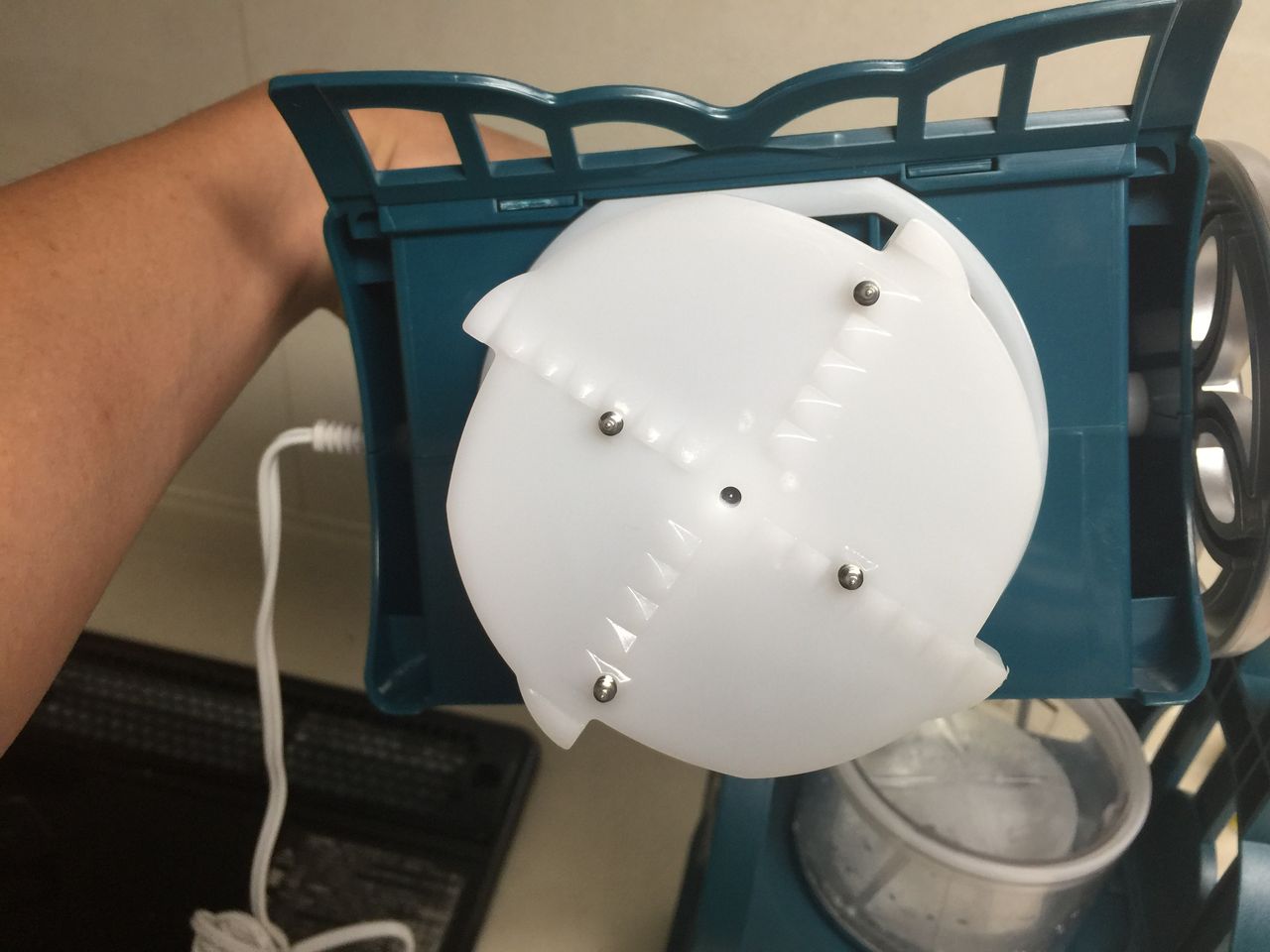こちらが中身です。手前のカップのようなものは、氷を削るための刃です。