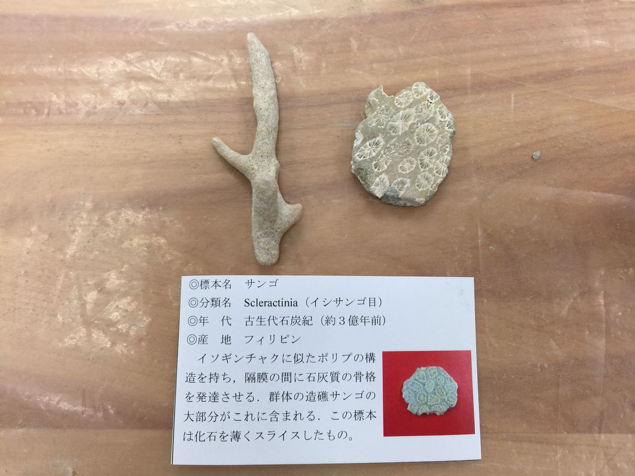 ・サンゴの化石(左側は参考のための化石。右側が発掘したもの)