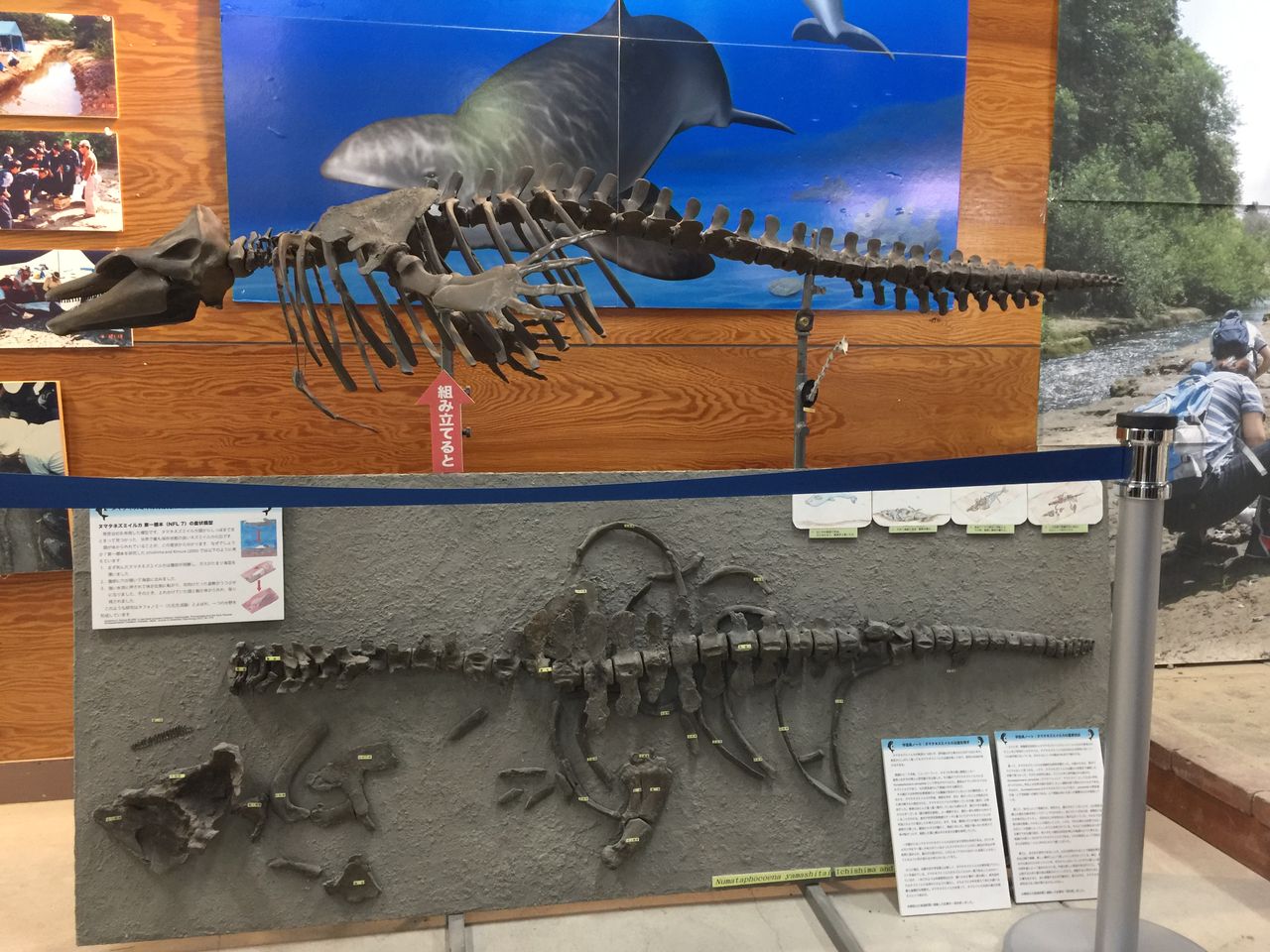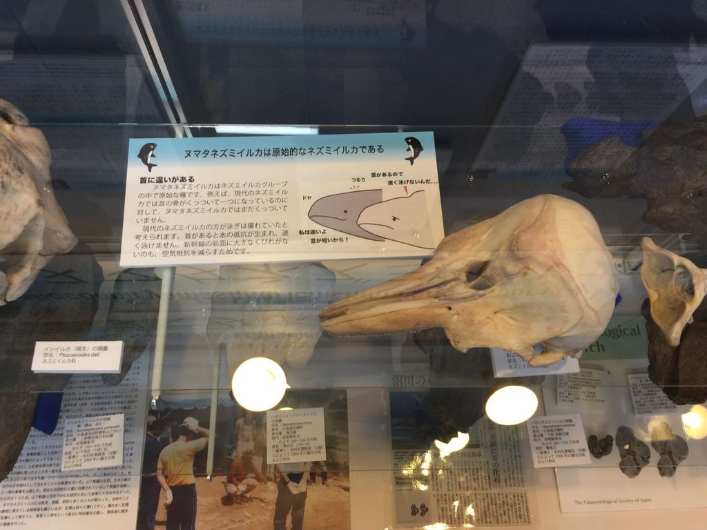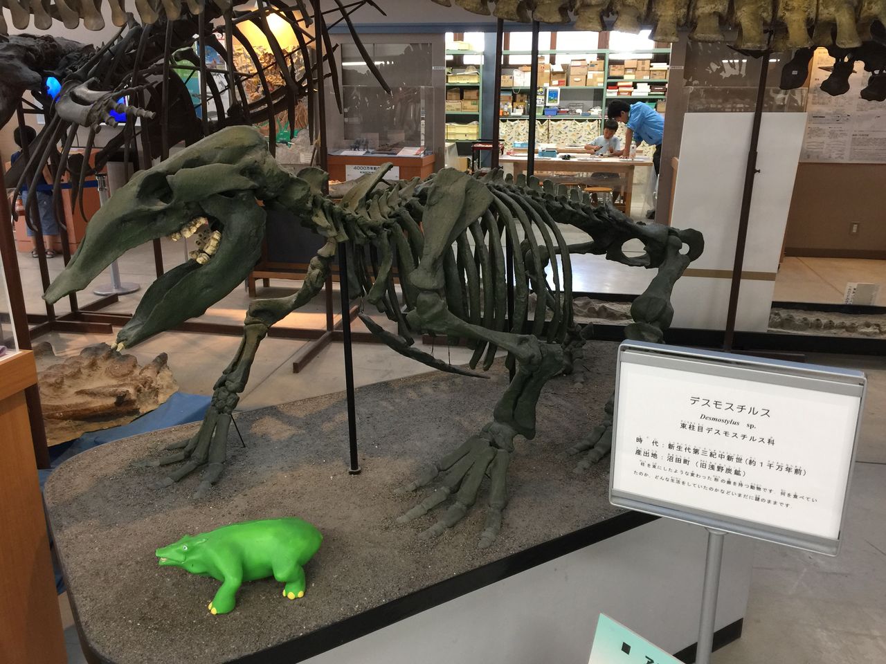 隣にはカイギュウや、デスモスチルスといった哺乳類の化石の模型も展示されています。