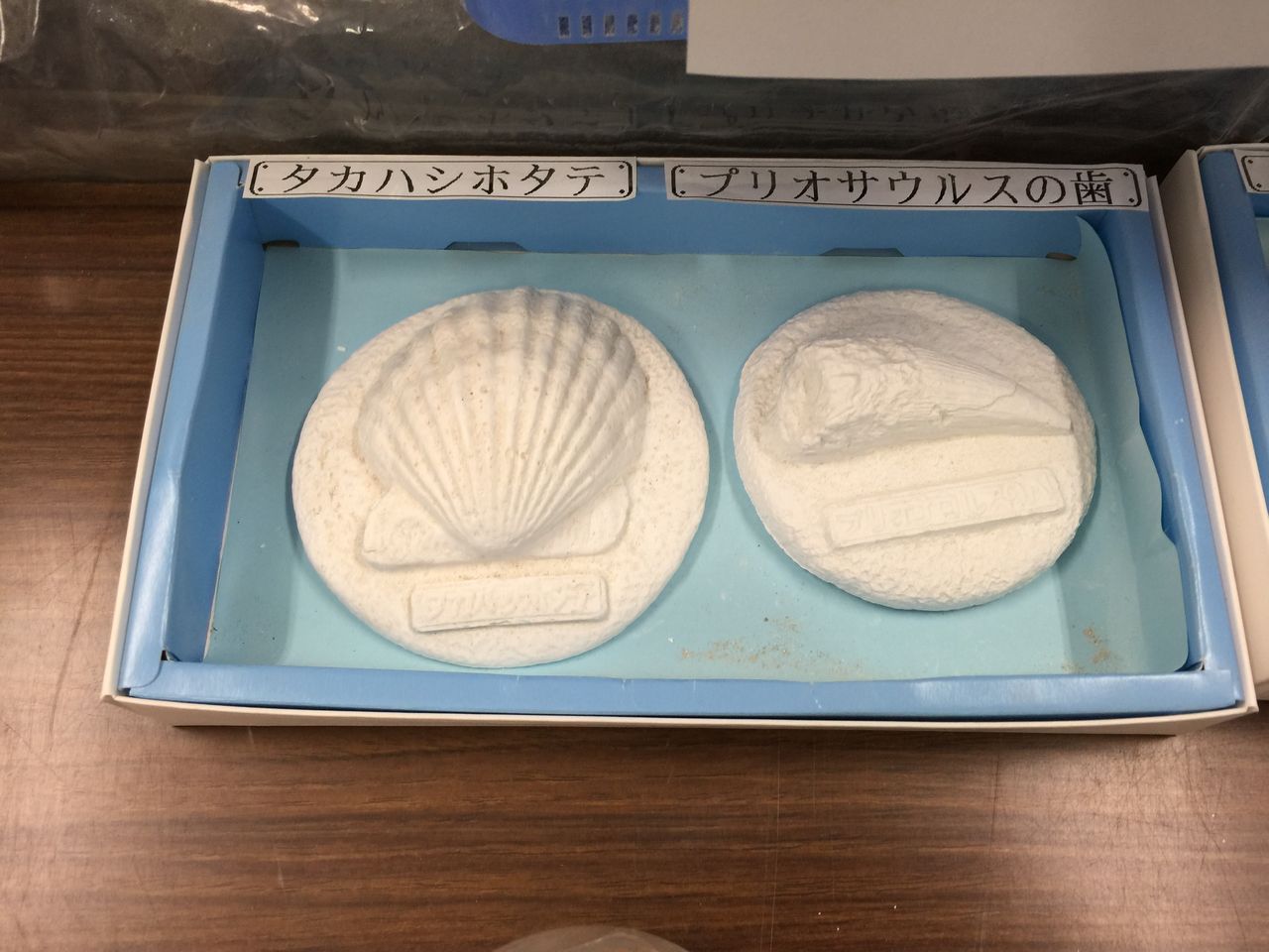 レプリカ作製では、タカハシホタテまたは、プリオサウルスの歯のどちらかの