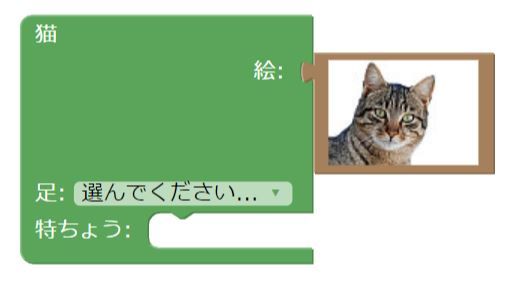 まず、この緑のブロックは「猫」をあらわすものなので