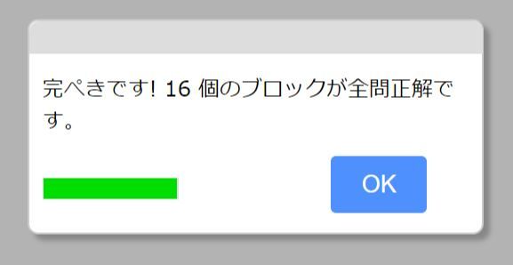 全部正解していたら、こんなメッセージが表示されます。