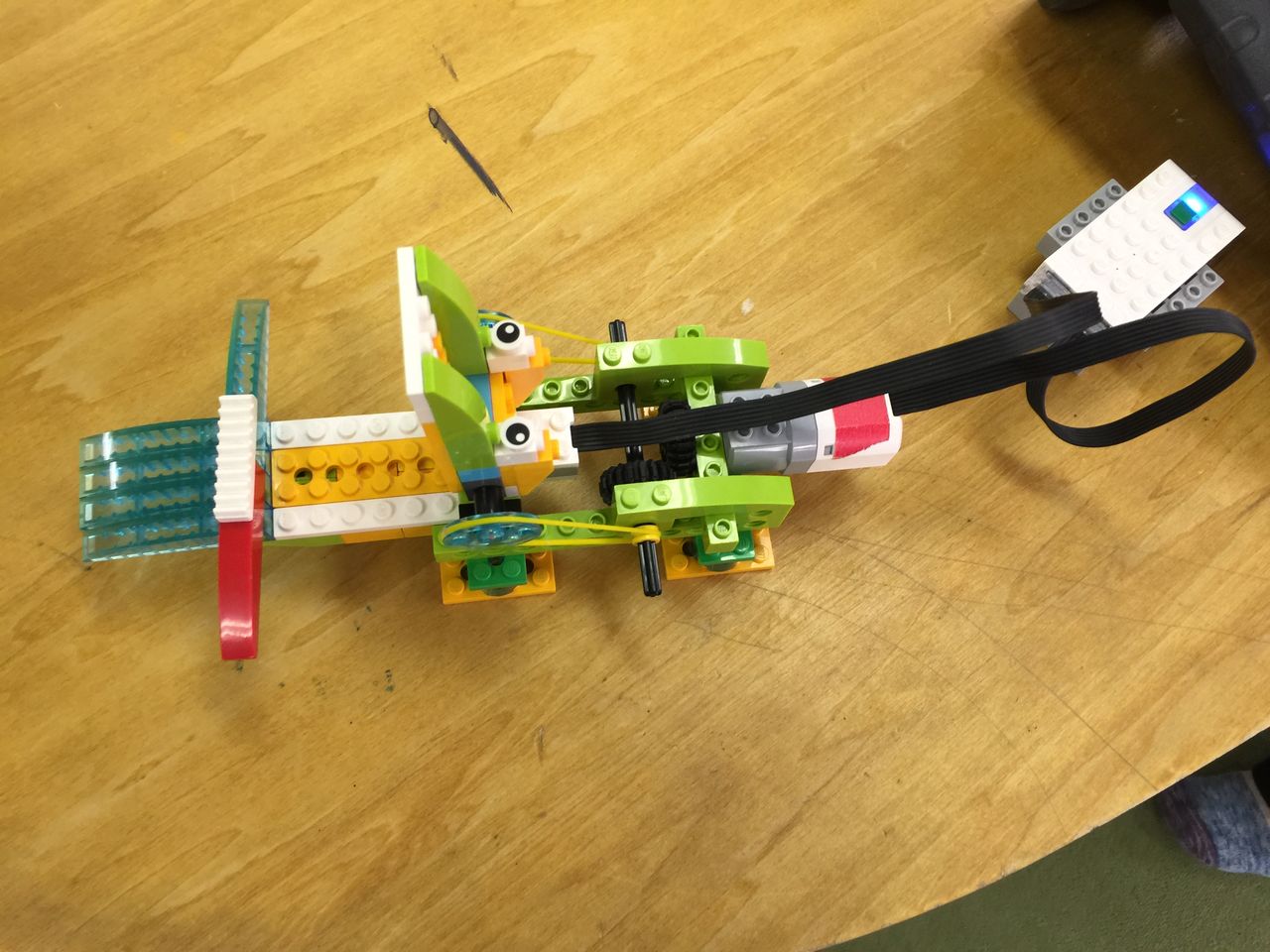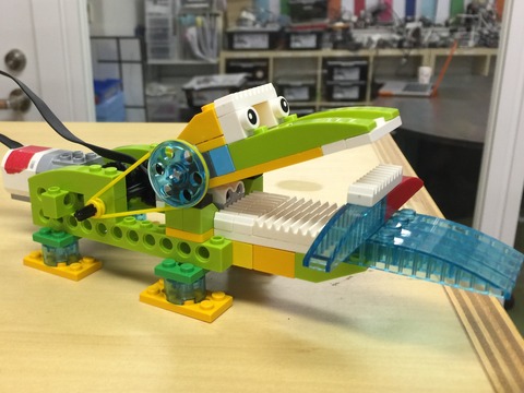 ロボット作製体験では、レゴブロックにモータとセンサーを組み合わせたワニの