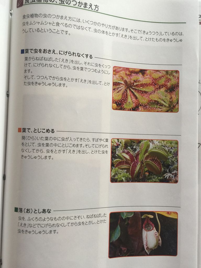 また、食虫植物が虫を捕食す3つの方法についても学習しました。
