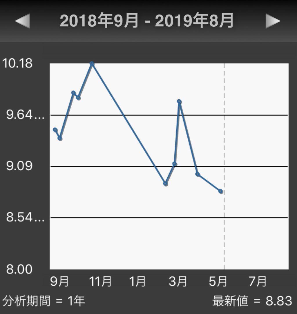 ここ1年くらいの50走のタイムはこんな感じです。冬の間に一生懸命練習して、走っていた結果が出てきたようで、ここ最近9秒を切ることが出来るようになってきています。