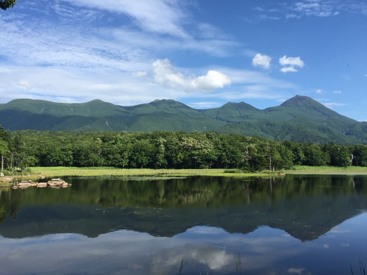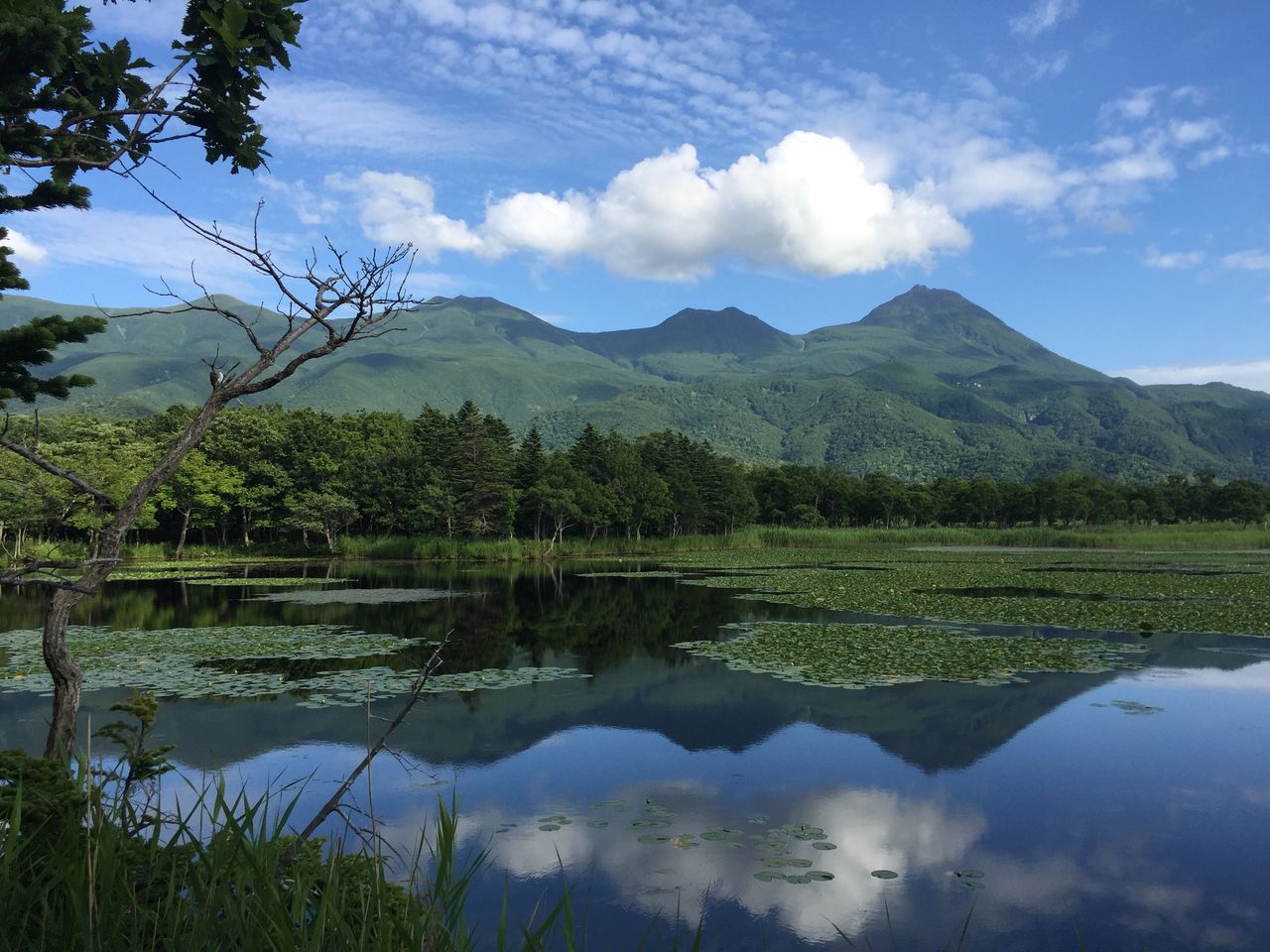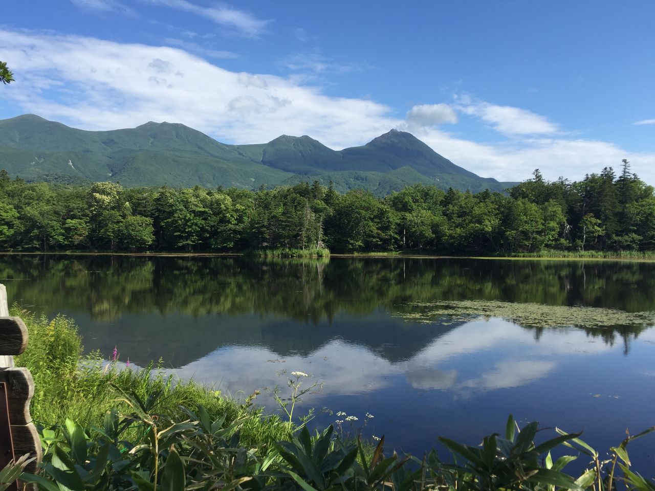 知床5湖は川が流れ込まない、湧き水でできた湖とのことで流れがなく、風がなければ水面に山々が綺麗に映ります。