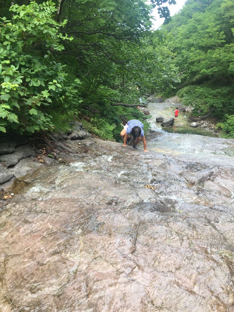 滝の上の方までは、結構な斜面なのですが、先に着替えを終えた子供たちは、さっさと上っていきます。