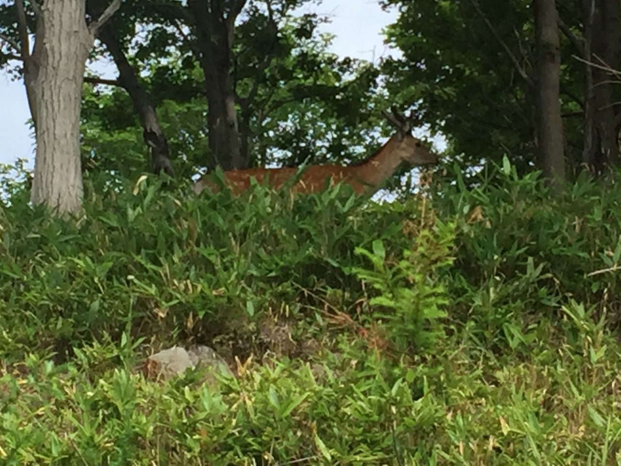 小ぶりですが、角が生えている雄シカでした。