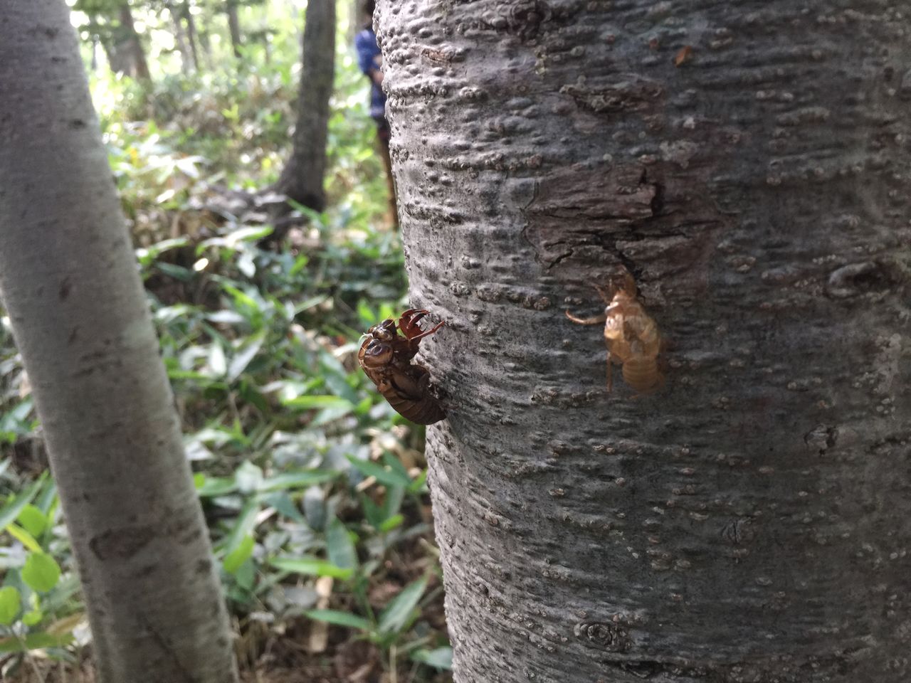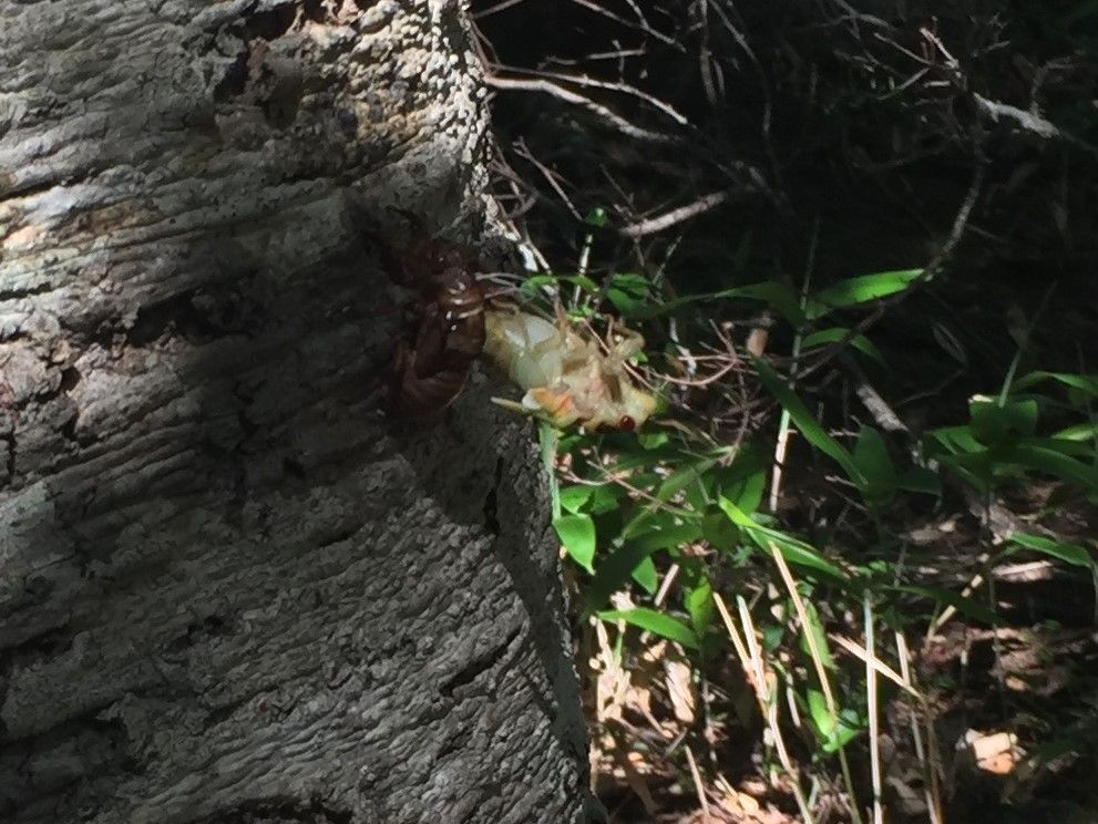 何と羽化途中のセミもいました。セミは夕方~夜に昼間に羽化するものだと思い込んでいましたが、このセミは昼間に羽化するとのことです。外敵に襲われないんですかねえ。