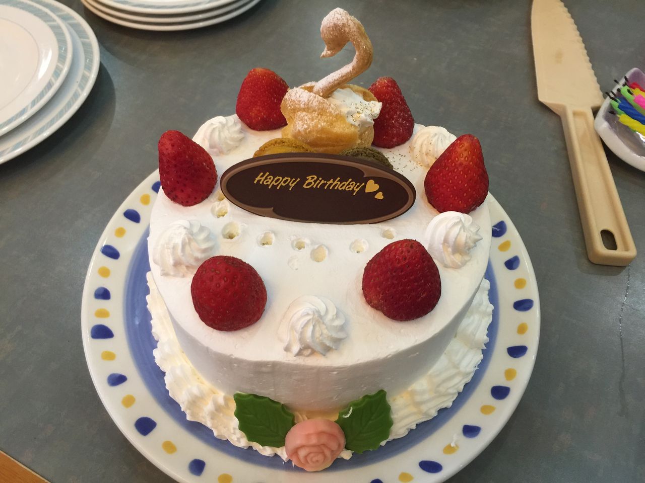 思っていたよりも大きなホールケーキで、ビュッフェで膨れたお腹にはちょっと苦しくて全部食べられなかったのが残念でしたが、誕生日のお祝いが出来ました。