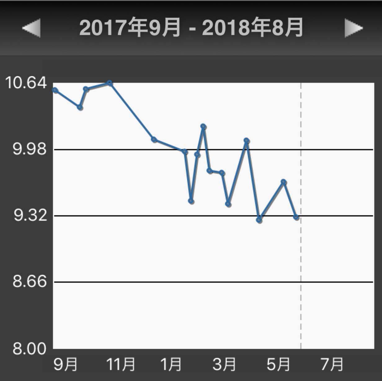 残念ながら、始めたばかりからの記録は残っていませんでしたが、昨年の9月からの記録はこんな感じです。
